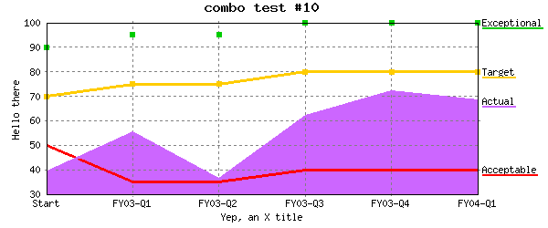 Same as above changing subtype="line pline point area" %CHART{data="R4:C2..R7:C7" legend="R4:C1..R7:C1" name="combo_10" subtype="line pline point area" table="table2" title="combo test #10" type="combo" width="600" xaxis="R2:C2..R2:C7" xlabel="Yep, an X title" yaxis="on" ylabel="Hello there"}% |