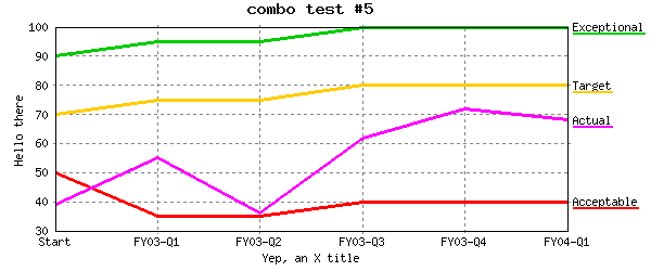 Same as above changing subtype="line" which should force all data sets to be drawn as line %CHART{data="R4:C2..R7:C7" legend="R4:C1..R7:C1" name="combo_5" subtype="line" table="table2" title="combo test #5" type="combo" width="600" xaxis="R2:C2..R2:C7" xlabel="Yep, an X title" yaxis="on" ylabel="Hello there"}% |
