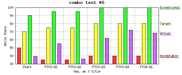 Same as above changing subtype="bar" which should force all data sets to be drawn as bar %CHART{data="R4:C2..R7:C7" legend="R4:C1..R7:C1" name="combo_6" subtype="bar" table="table2" title="combo test #6" type="combo" width="600" xaxis="R2:C2..R2:C7" xlabel="Yep, an X title" yaxis="on" ylabel="Hello there"}% |